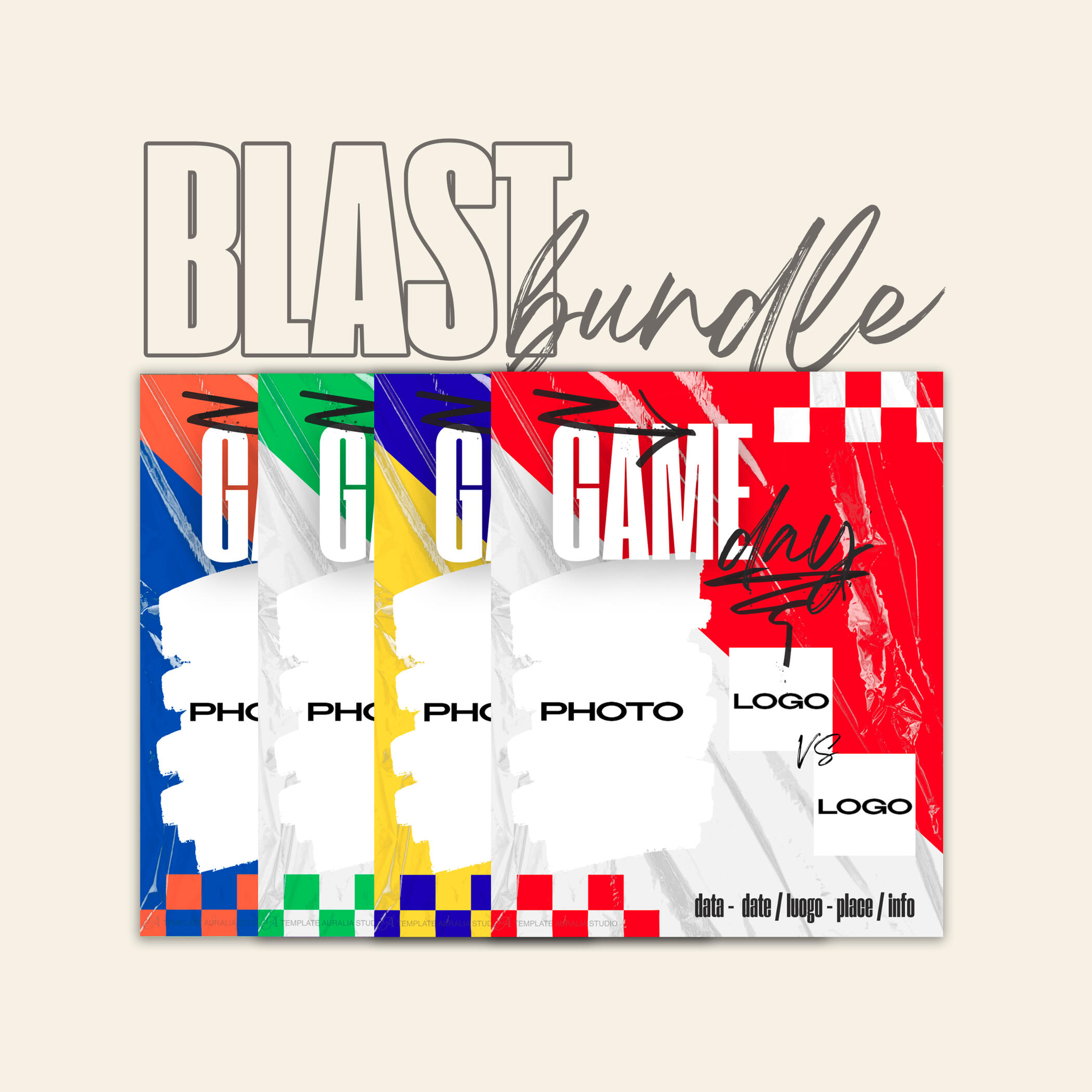 Set di 10 template Canva, completamente personalizzabili e adatti a qualsiasi sport. Il pacchetto include: grafiche per Gameday, Risultati e una grafica extra adatta a qualsiasi altro utilizzo.